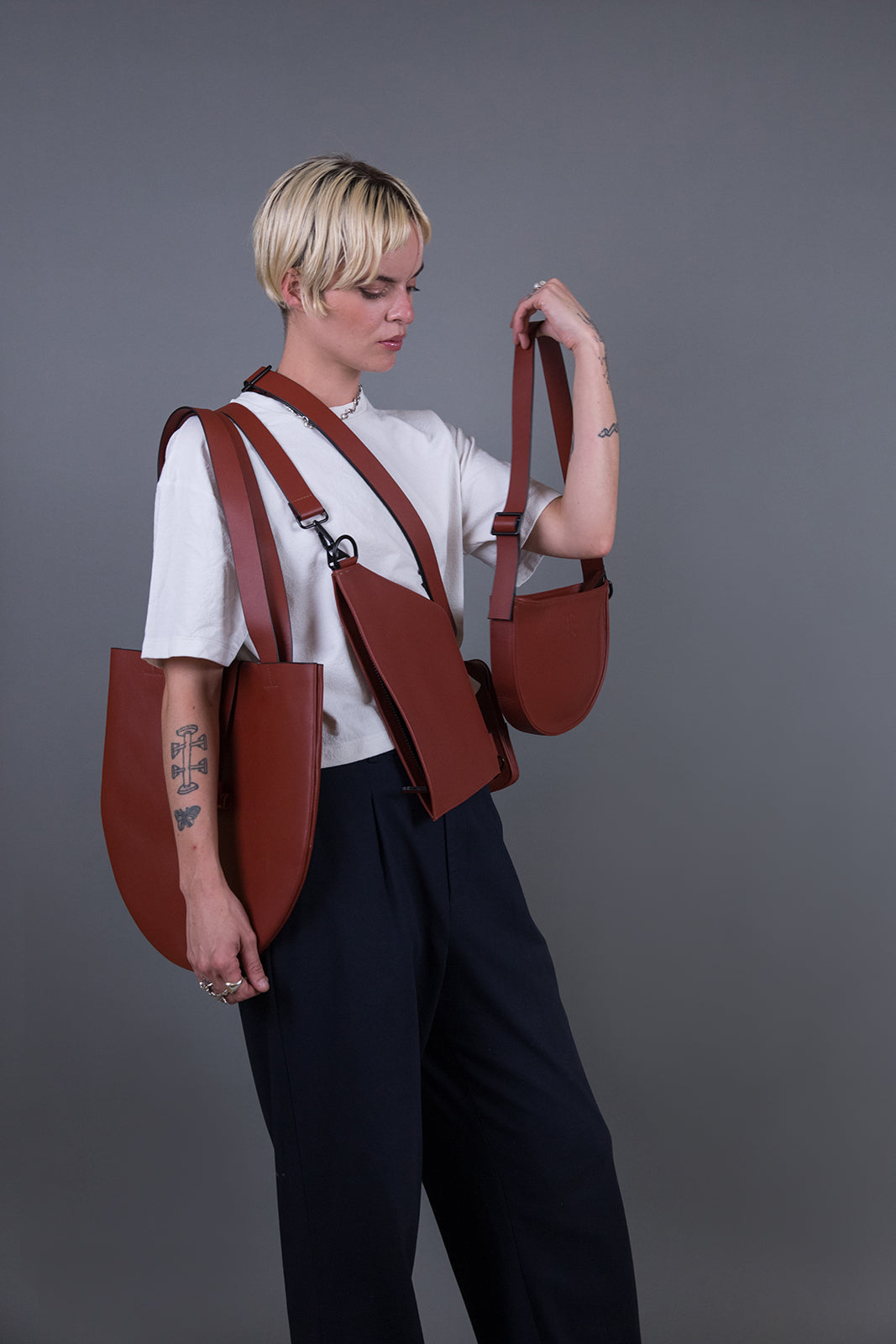 GAG es un estudio multidisciplinario establecido en 2014 en México que diseña, conceptualiza y produce objetos de piel y algodón para uso cotidiano.