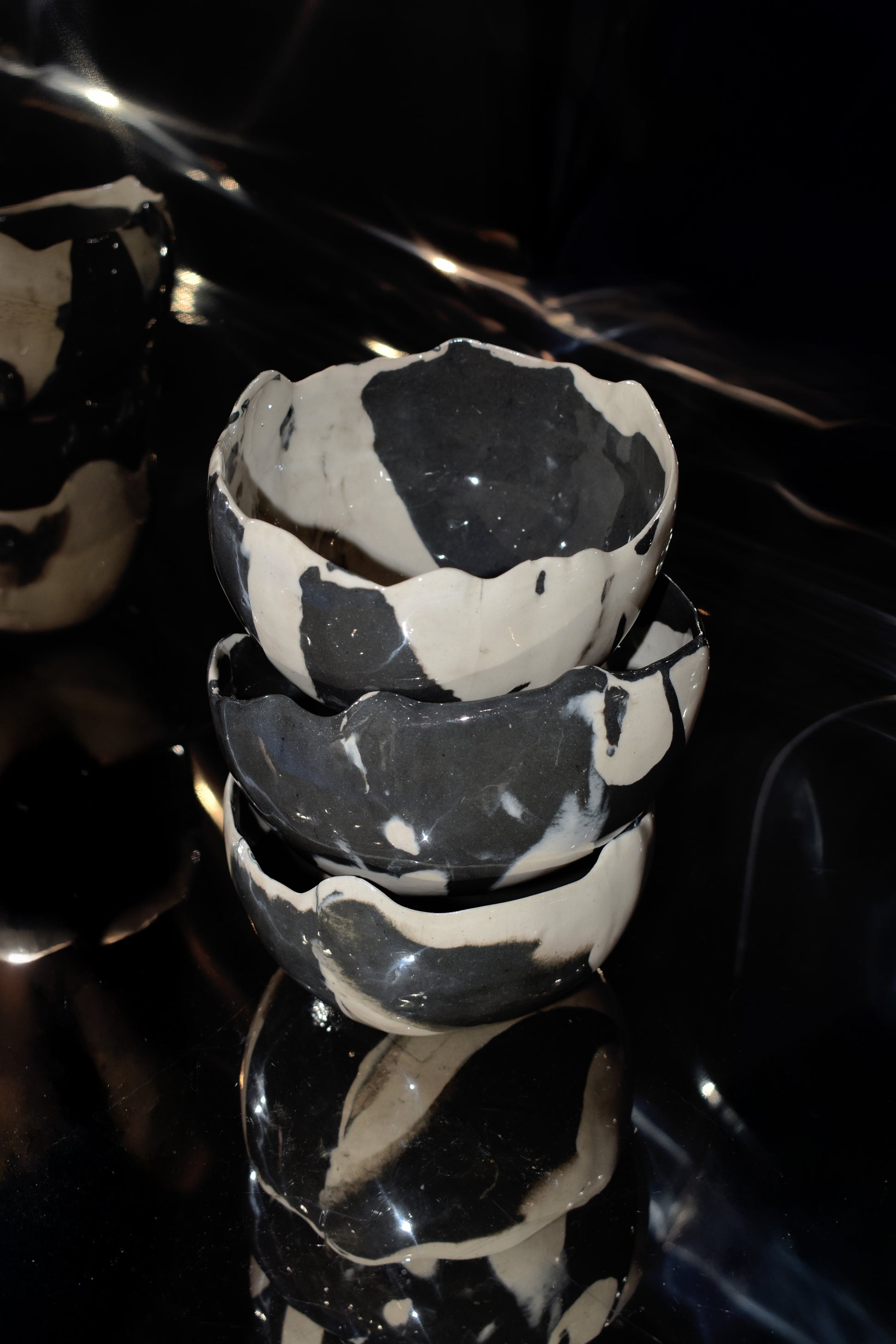 Pasta gres alta temperatura mezclada con pasta pigmentada negra, aplicacion de esmalte transparante en el interior y exterior (medidas pueden variar ya que las piezas son hechas a mano).