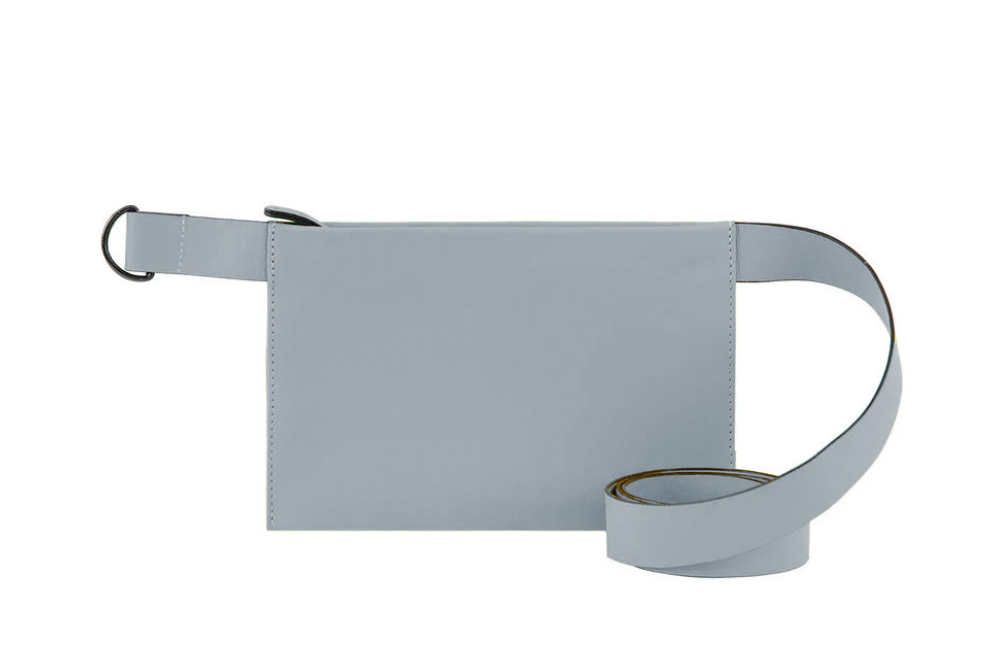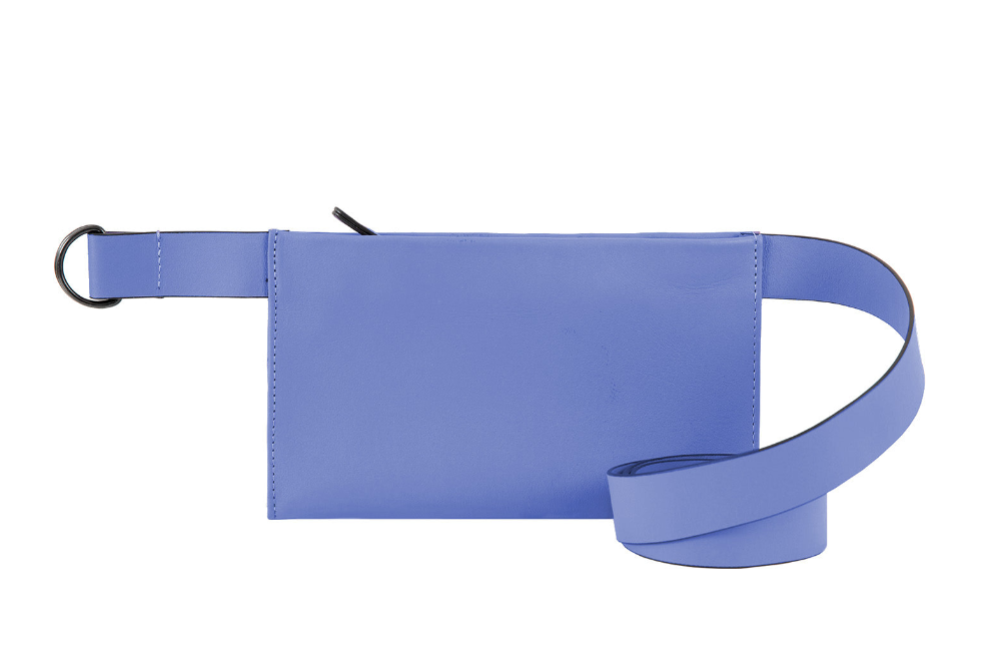 Cangurera rectangular de cuero. Tirante ajustable para usar al hombro, cintura o cruzado.